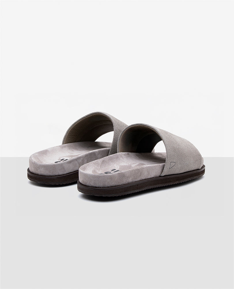 Construção integral em camurça legítima. Tanto a tira superior quanto a palmilha onde você pisa são revestidas, garantindo toque macio e evitando o suor excessivo comum em materiais sintéticos.