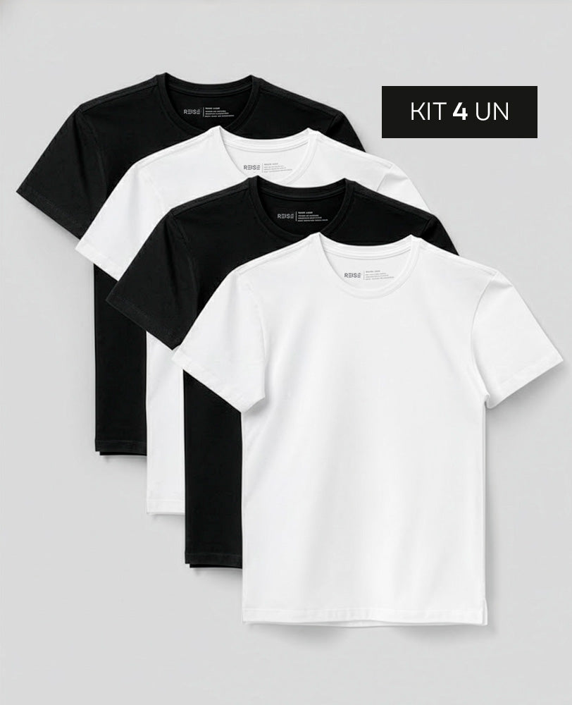• Manga curta, modelagem reta e gola careca.