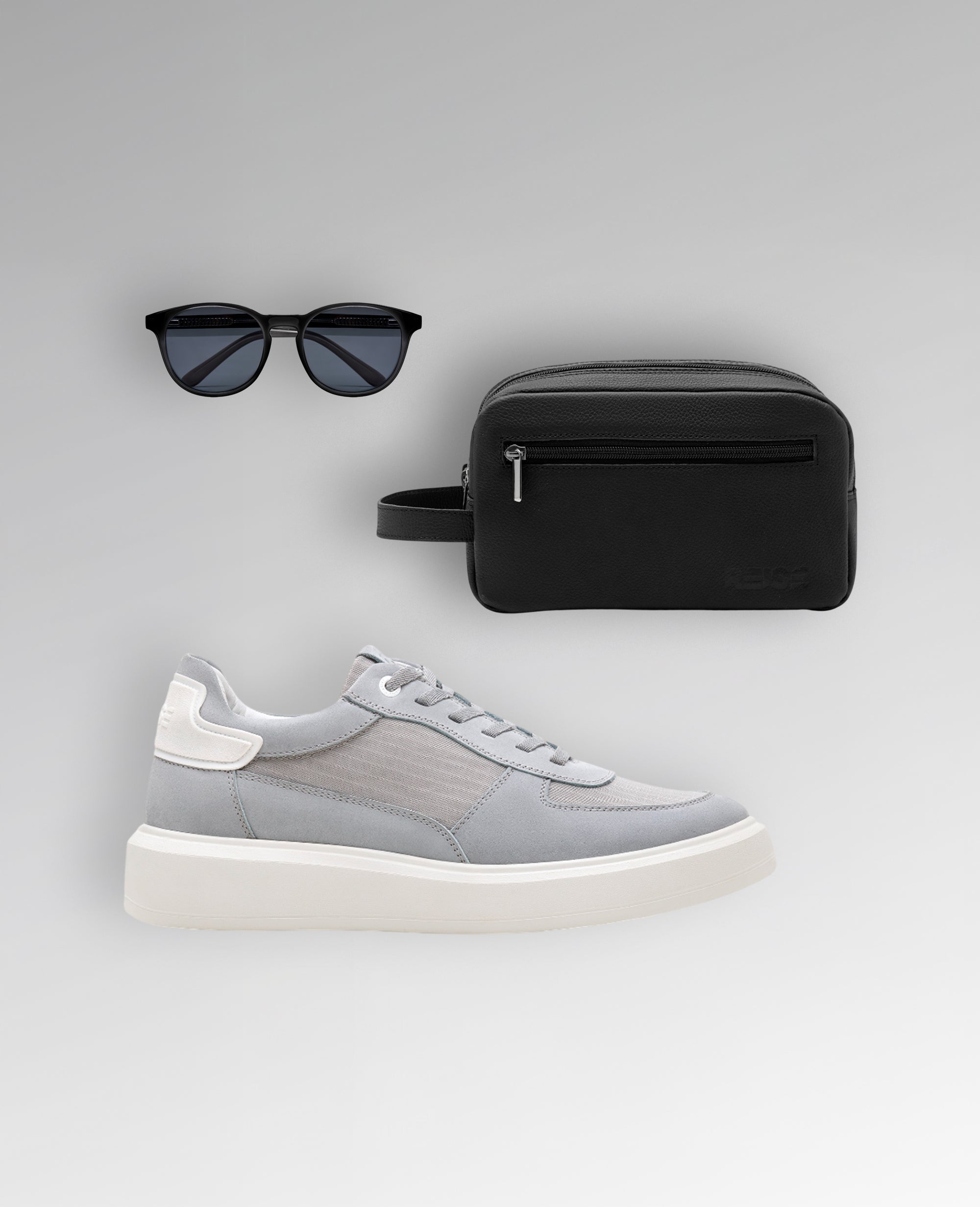 O Kit Essential Reise foi criado para homens que buscam sofisticação sem complicação. O Tênis Carrera, feito em couro premium, oferece conforto e presença em compromissos sociais ou dias intensos. A necessaire garante organização inteligente em dois compartimentos amplos e bolso externo, ideal para manter tudo à mão com estilo. Já o Óculos Silverstone completa o conjunto com design moderno e refinado, traduzindo autenticidade e atitude.