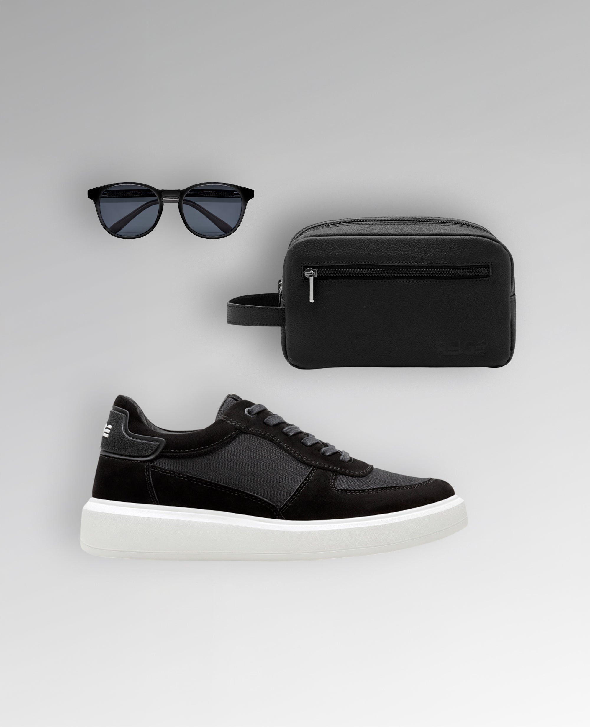 O Kit Essential Reise foi criado para homens que buscam sofisticação sem complicação. O Tênis Carrera, feito em couro premium, oferece conforto e presença em compromissos sociais ou dias intensos. A necessaire garante organização inteligente em dois compartimentos amplos e bolso externo, ideal para manter tudo à mão com estilo. Já o Óculos Silverstone completa o conjunto com design moderno e refinado, traduzindo autenticidade e atitude.