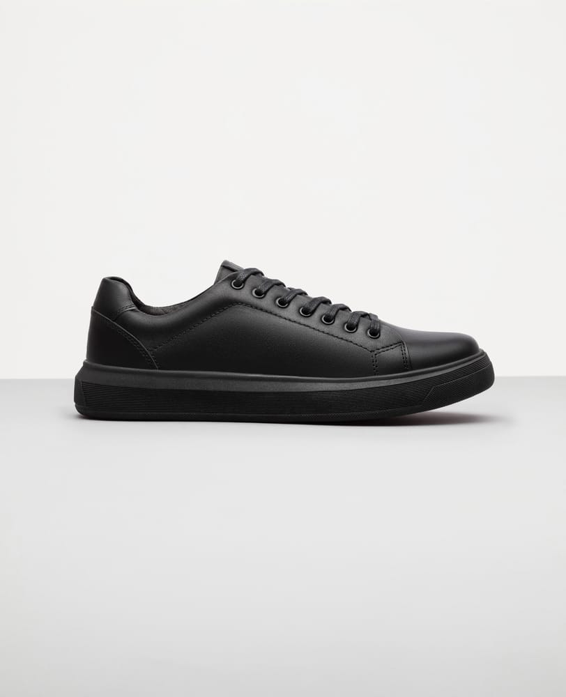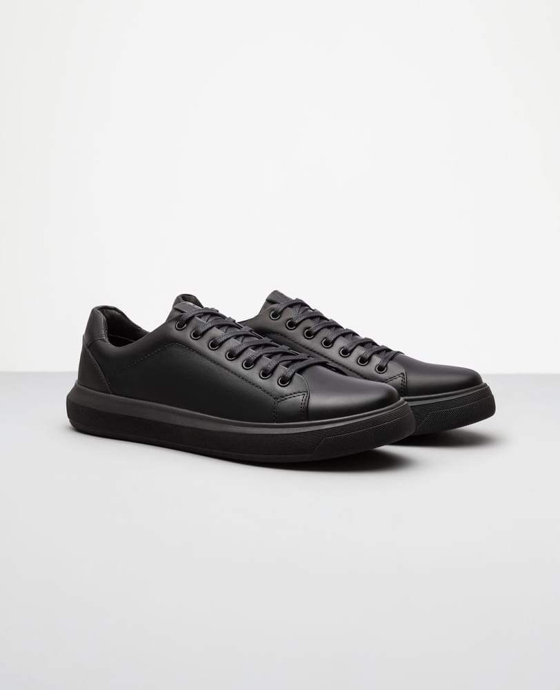 Tênis de couro são peças confortáveis e cheias de estilo. Adoramos o RS6 combinado com blusa de malha, calça de sarja e tênis para um visual prático e moderno.