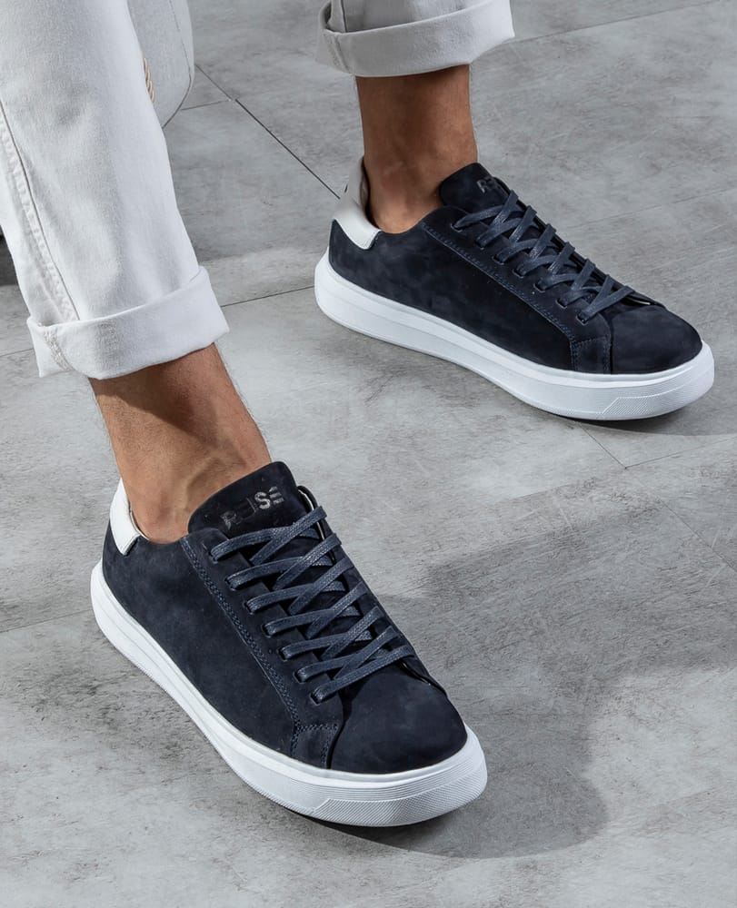 • 100% Couro nobuck na cor azul marinho;
